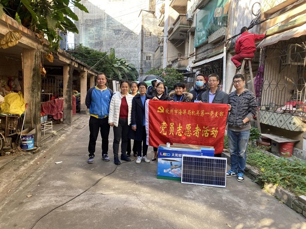 我局在了解情况后,本着为群众办实事的原则立刻和沙坡社区沟通联系,着手解决问题。经过多次与沙坡社区商量后,决定由我局牵头联合有关部门共同出资购买了太阳能电路灯,并安排专业施工人员到现场进行安装。现在,小区门口和每栋楼下都装好了路灯,当夜幕降临时,灯一亮起,小区明亮起来。