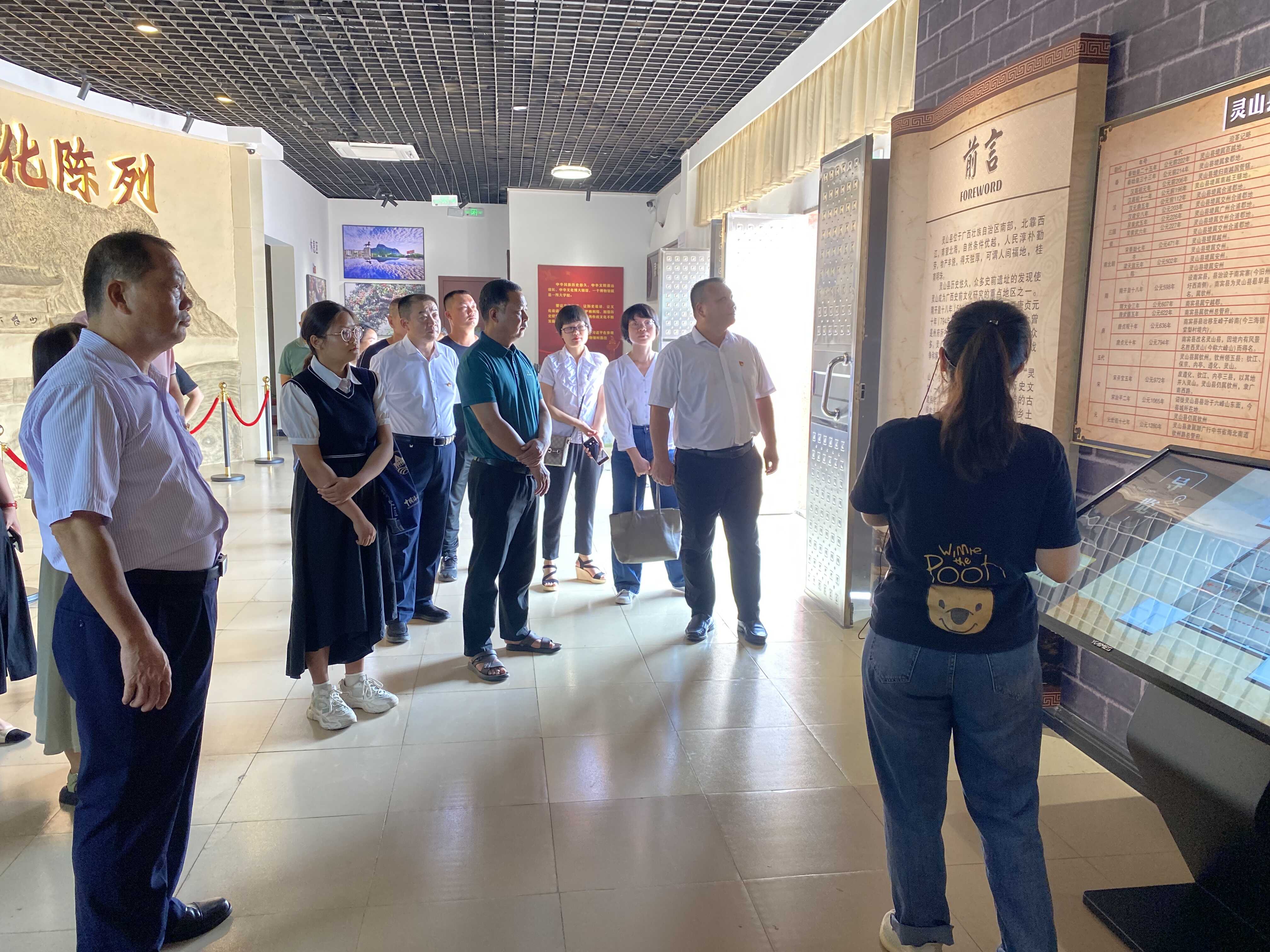 走进灵山县博物馆,一幅汇集了六峰山、民俗活动、铜鼓等灵山特色风物的浮雕映入眼帘。在讲解员细致的讲解下,大家先后参观了远古化石、鸿蒙石器、越地汉风、灵山铜鼓、碑碣石刻、灵山英杰、古建华章、民艺民俗、瓷艺繁花、烽火灵山十个展厅。通过参观珍贵的历史图片、文物、翔实的史料,党员们仿佛置身于钦州历史文化的长河之中。从原始社会至解放斗争各个历史时期的珍贵文物中,深入了解灵山县的起源、发展和演变,重温灵山人民英勇奋战、保家卫国的红色故事,感受灵山人民勤劳勇敢、自强不息的精神,切实增强了大家对革命历史的认同感,也进一步坚定了民族自信和文化自信。