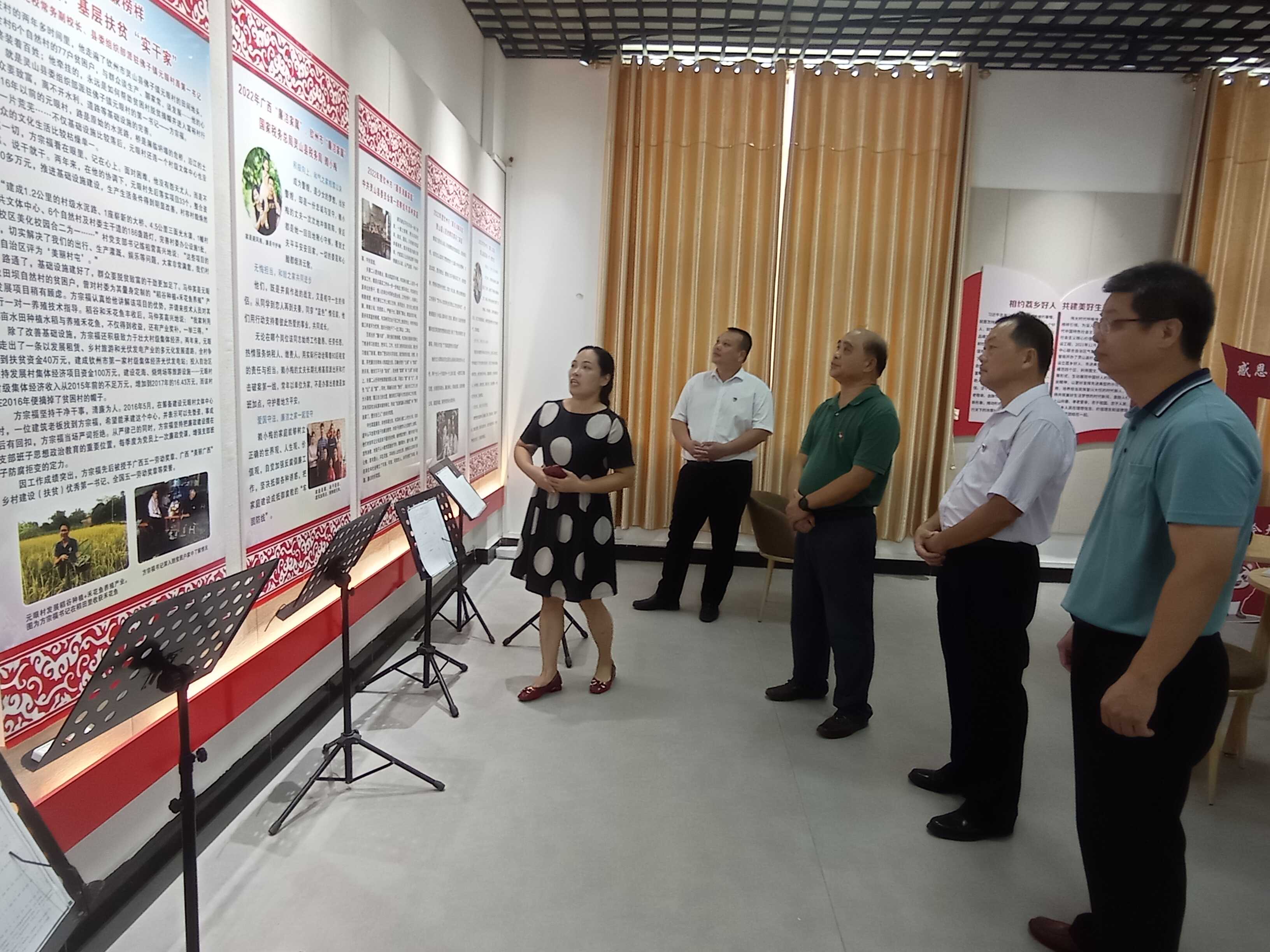图4:在灵山县好人馆,党员们认真观看展板上勤廉榜样先进事迹。
