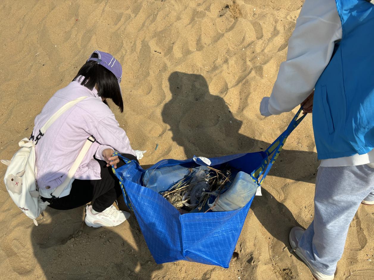 在活动中志愿者们穿着蓝色海洋协会服,分工合作,弯腰俯身,拾捡海滩上的塑料包装袋、烟头、矿泉水瓶……参与活动的志愿者们不断重复着捡拾海边废弃物的动作,净滩活动总共持续了近三个小时。志愿者们的行动也影响了海滩往来的群众,吸引他们关注海洋垃圾污染问题,提高海洋保护意识。志愿者小李说:“保护海洋环境,从来不是一句口号,希望大家在海边休闲放松的时候不要随手乱扔垃圾,还海滩一片洁净,努力做美丽海湾建设的践行者。”