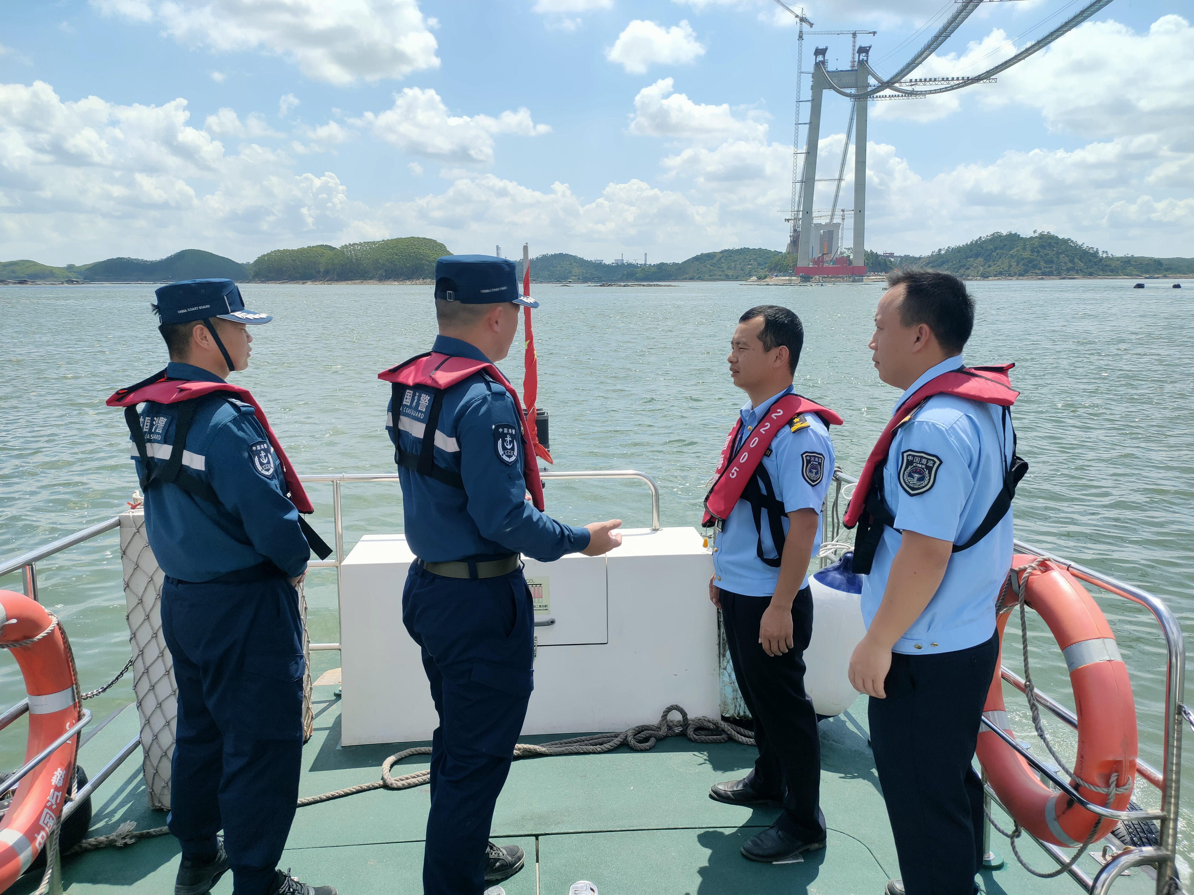 图为联合执法人员检查龙门跨海大桥项目
