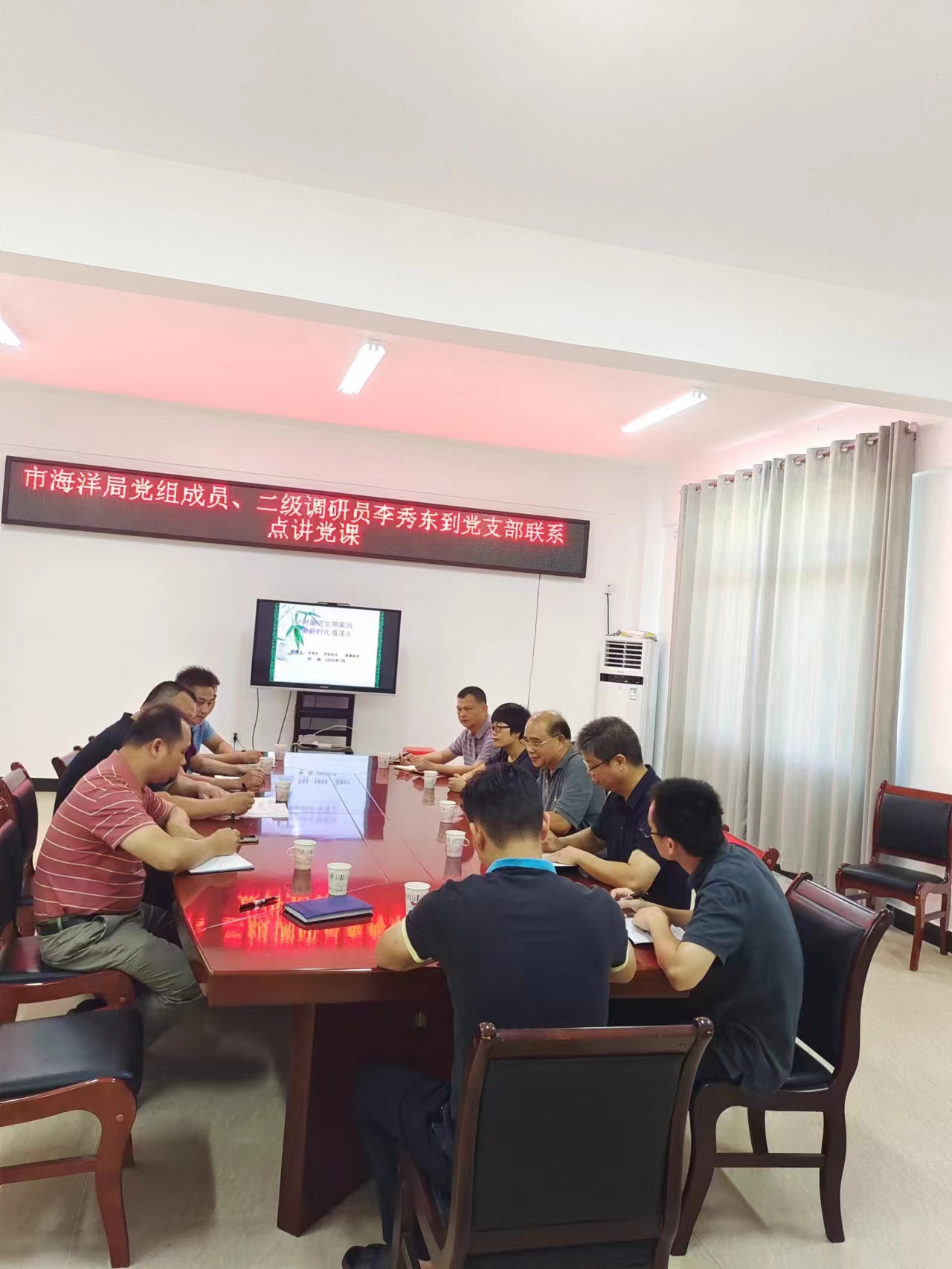 为激励党员干部坚定理想信念,增强廉洁自律意识,营造风清气正的良好政治生态,2023年7月26日上午,市海洋局党组成员、二级调研员李秀东到钦南党支部讲授家风家教廉政党课并作集体廉政谈话。