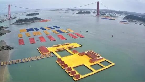 正在推广的钦州新型生态蚝排与水上设施。 市海洋局供图