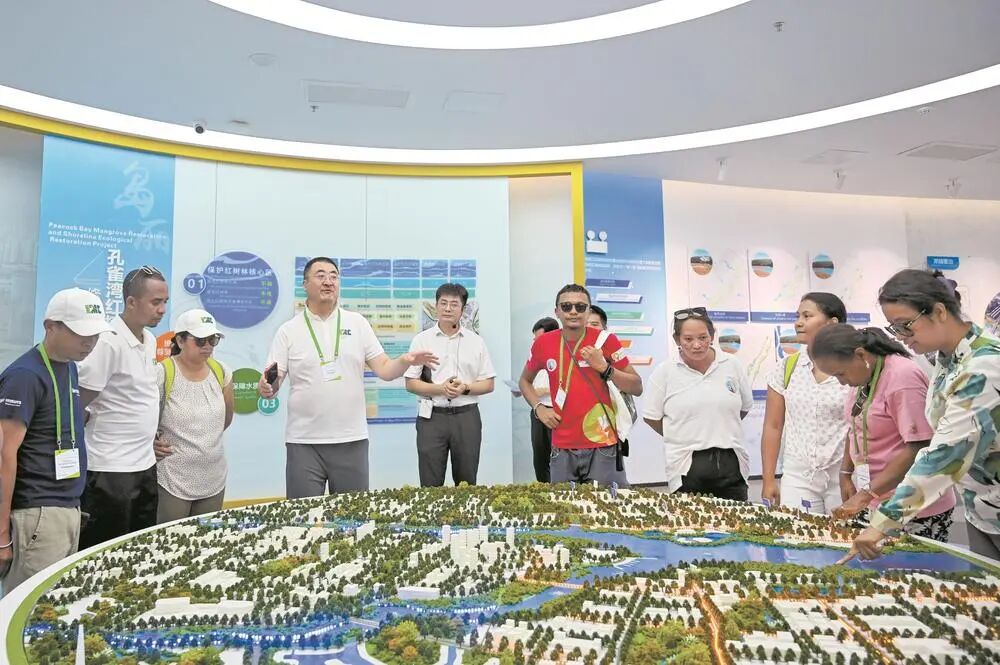 国际红树林中心2025年首期研讨班学员参观城市规划沙盘。